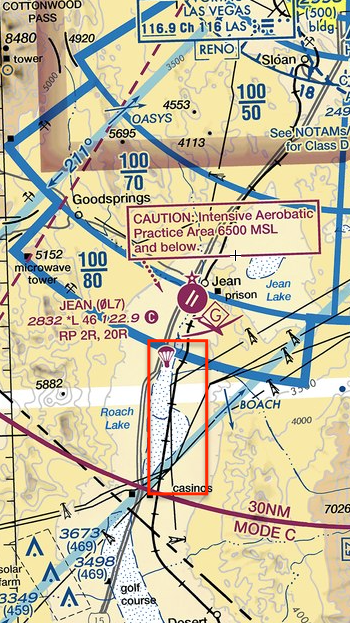 Set your course towards Jean airport (0L7) as you near Las Vegas. Your best bet is to have been using flight following on your trip in, but if not, contact Las Vegas Approach on 125.9 sometime before the mode-C veil. “Las Vegas approach, Piper 123XH, 30 miles South at 5,500, request bravo transition to North Las Vegas.” Depending on your altitude, this is also a good time to start listening for KVGT ATIS if you have a second radio, otherwise you end up with a high workload as you transition the bravo and get handed off to VGT tower. For the pilots who don’t often operate in Class B airspace, remember that ATC must explicitly clear you into the airspace; a vector and a transponder assignment wont be sufficient to keep you out of hot water if they didn’t say the magic words.